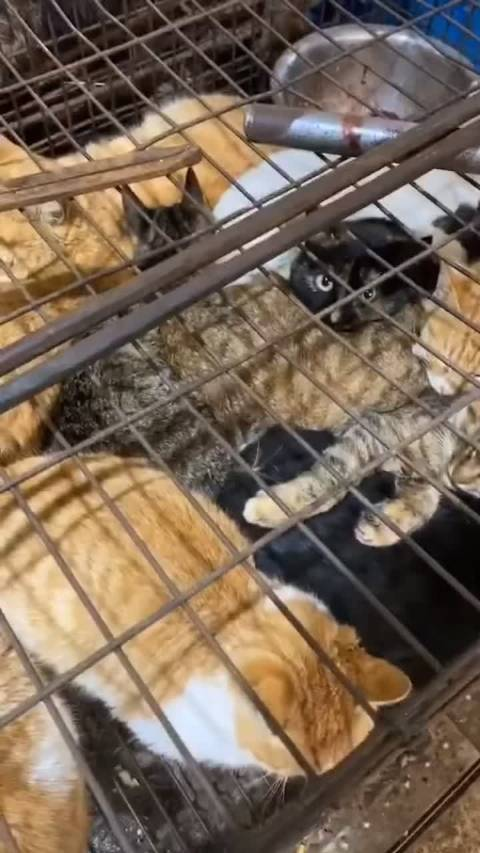 现场还有大量被猫贩子偷盗的猫狗等待宰杀,有的猫已经应激死亡,尸体与活体交叠,腐臭与苍蝇横飞。看到这种活生生的人间炼狱,但凡有点良知的人估计都忍不住要口吐芬芳了,甚至是想要左右开工赏他一千六百个喵喵拳。